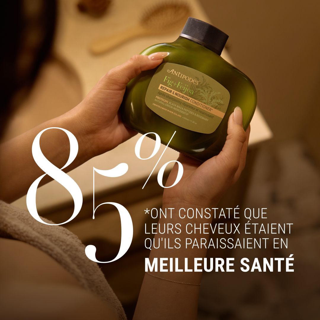 « L'après-shampooing Antipodes est vraiment génial. J'adore la façon dont il nourrit et adoucit mes cheveux en profondeur ; il agit presque instantanément. Son parfum est délicieux, avec des notes herbacées fraîches qui se prolongent par un subtil parfum de noix de coco, sans être trop sucré. Il laisse mes cheveux lisses, hydratés et faciles à coiffer, sans les alourdir. »